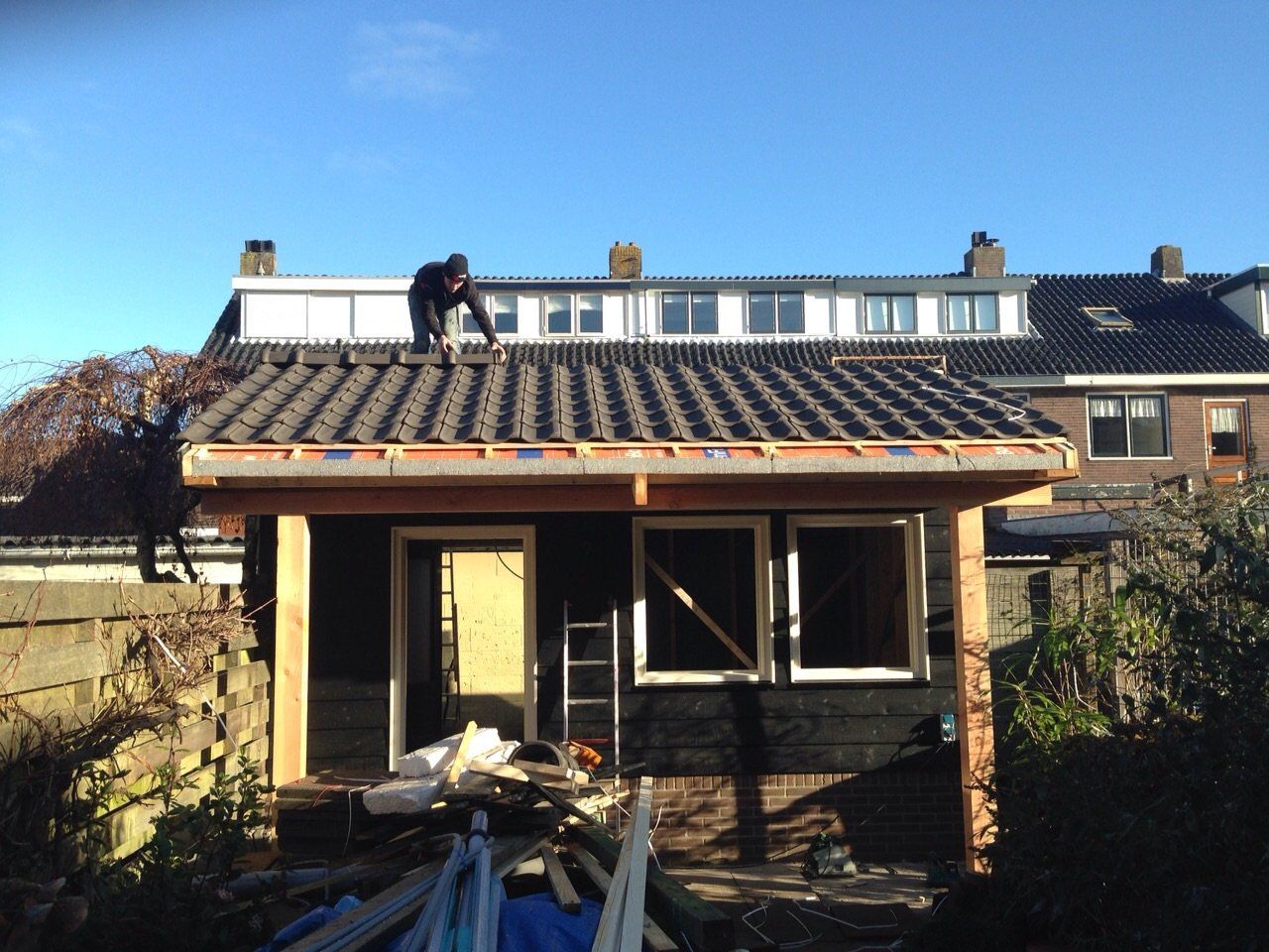 estaande woning van binnenuit geheel onderheid, nieuwe binnen muren, kozijnen en voorzien van een aanbouw.